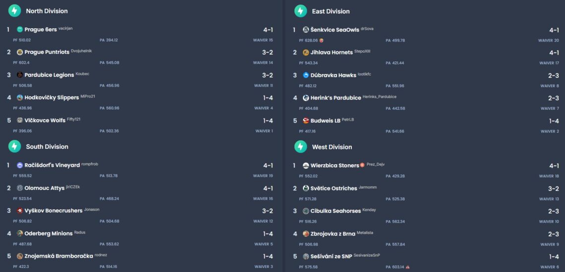CSSH FANTASY 2025 – TABULKA PO WEEKU 5