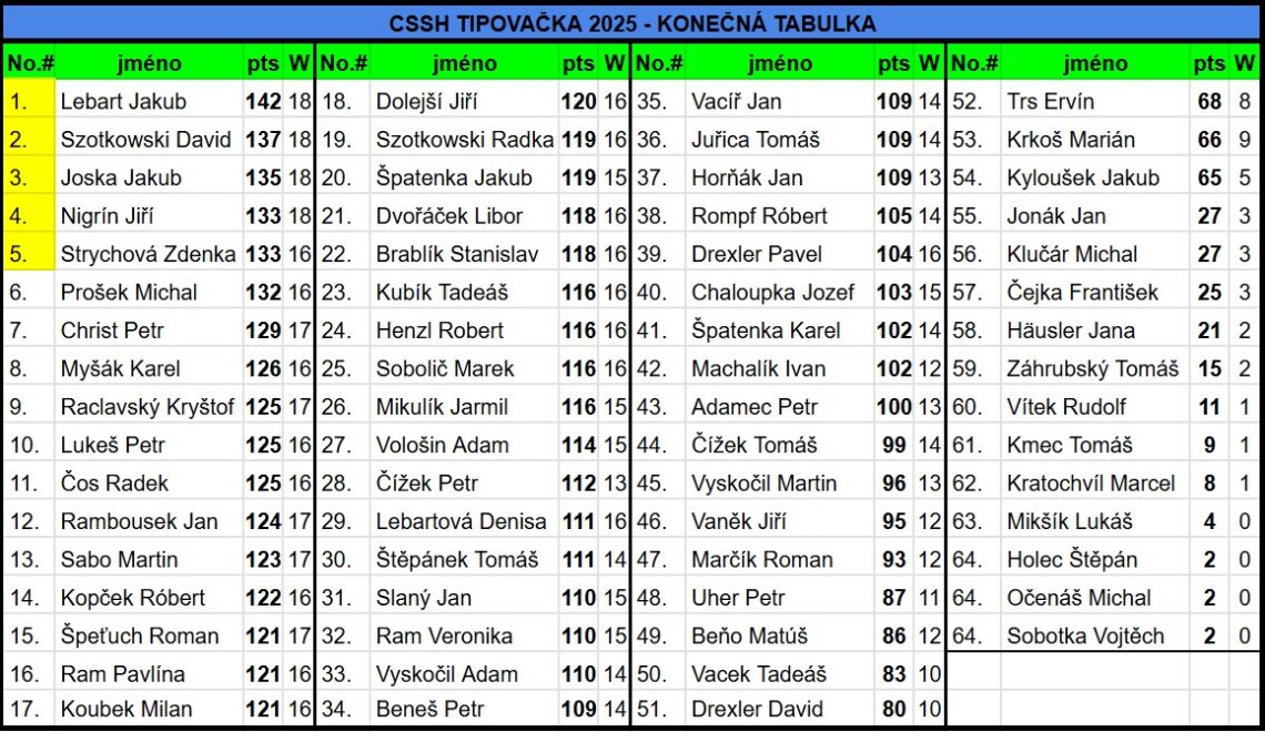 CSSH TIPOVAČKA 2025 – TABULKA PO WEEKU 21