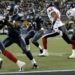 Když Jaxon Smith-Njigba (na fotce) skóroval touchdown, měl 5 zachycení pro 117 yardů. Sam Darnold měl v tu dobu 5 zkompletovaných přihrávek pro 117 yardů.