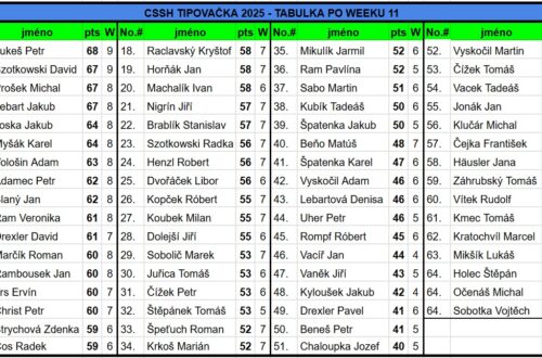 CSSH TIPOVAČKA 2025 – TABULKA PO WEEKU 8